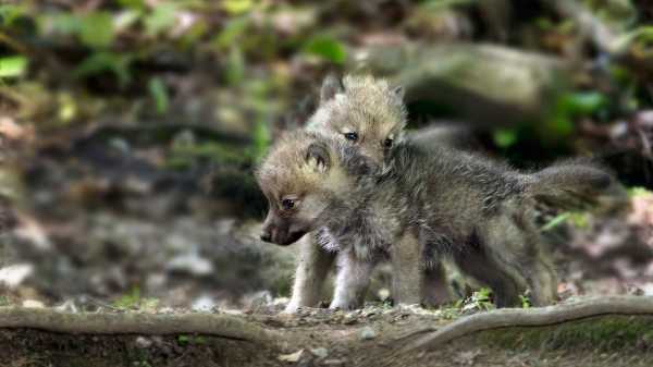 Когда волчатам исполняется 2 месяца, их переводят в другое безопасное место, где они будут оставаться когда стая уйдет на охоту. Конечно, они там остаются не одни: один или два взрослых волка остаются присматривать за ними.
