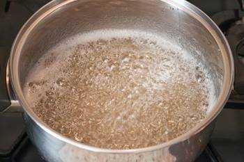 - Дайте продукту постоять 3 часа, затем влейте воду. Поставьте состав на плиту и прогрейте на средней мощности. Когда масса закипит, выждите 6 минут и выключите конфорку. Остудите.
