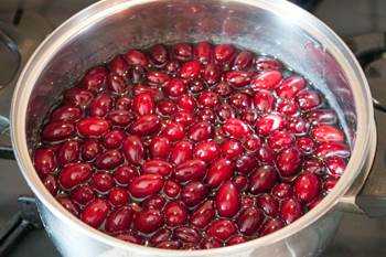 - Начинать варку следует с кизила — проварить его четверть часа, охладить.