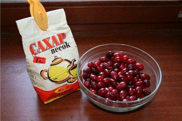 - В другую емкость насыпать кизил (1 кг) и сахар (900 г).