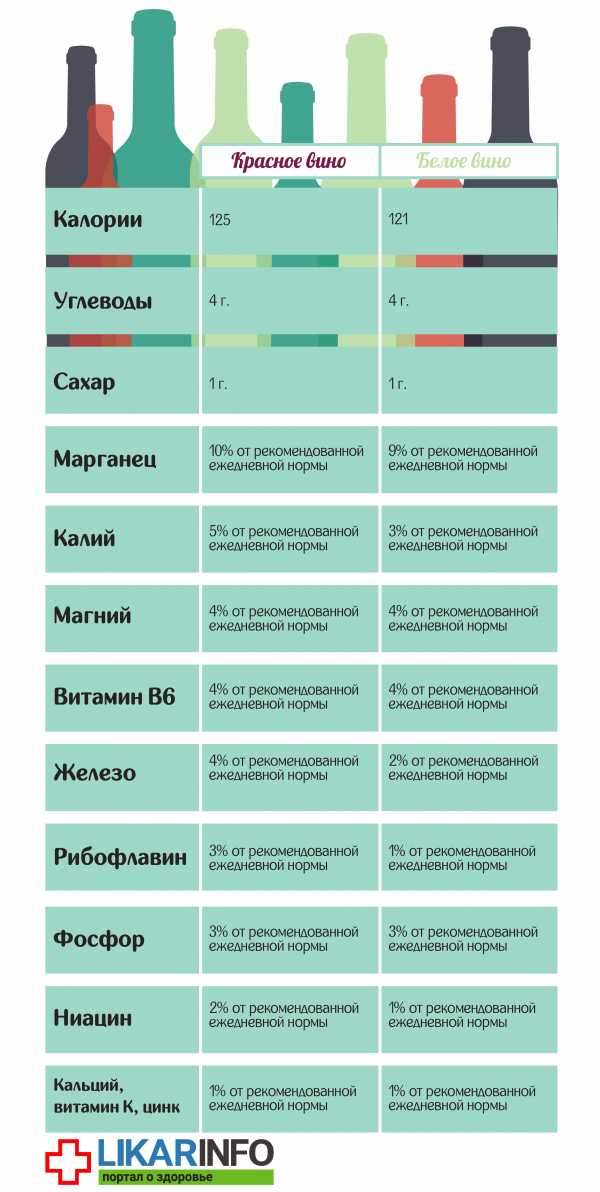 В целом, красное вино имеет небольшое преимущество перед белым, так как содержит больше витаминов и минералов. Зато в белом содержится меньше калорий.