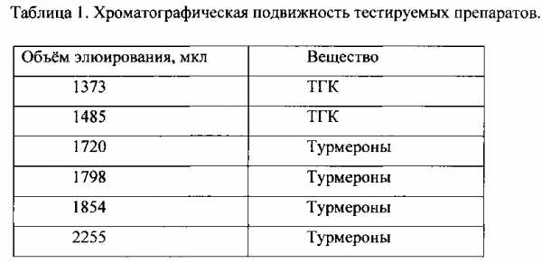 — в Таблице 1 — Хроматографическая подвижность тестируемых препаратов.