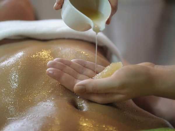Необходимо купить настоящий мёд, он будет выводить шлаки и токсины из организма. Мёда необходимо две чайные ложки, а также добавить к нему нужно 10 капель эфирного масла. Состав наносится на ладони, которыми производятся лёгкие похлопывания по животу в течение 10 или 15 минут.
