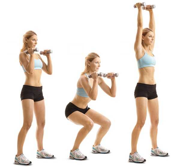 - Приседания по 10-15 раз по 3 подхода. Чтобы увеличить нагрузку, в руки можно взять гантели.