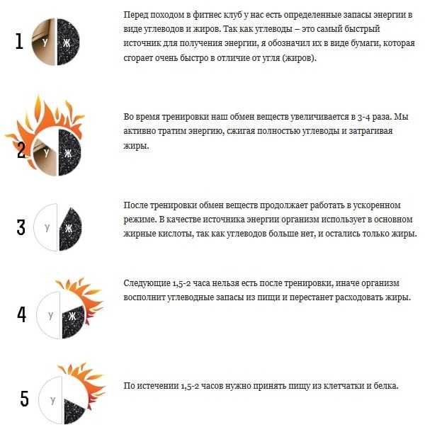 Дело в том, что организм после усиленной тренировки истощен, ему нужно срочно восполнить затраченную энергию. Если его вовремя не «накормить», то он запомнит эту стрессовую ситуацию и в последующем будет менее активно сжигать калории, «запасая» их.