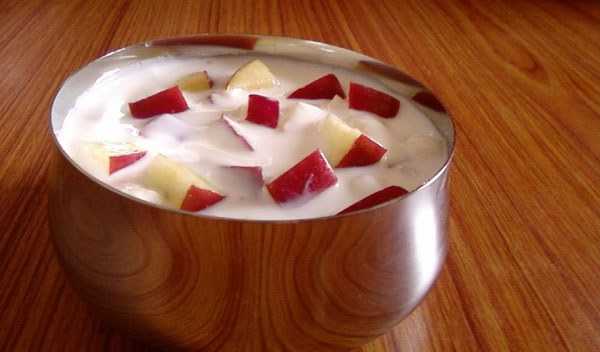 Почти так же можно использовать кисломолочный продукт, добавляя в него курагу или чернослив. В этом варианте: