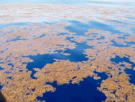 Саргассово море, благодаря водорослям, местами похоже на настоящее пастбищеИз-за отсутствия физической возможности укоренится в донном грунте, все водорослевые растения удерживаются на поверхности моря.