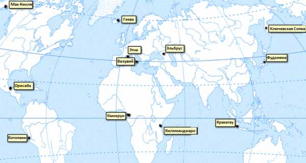Только в Тихоокеанском поясе расположено 330 действующих вулканов. Крупные вулканы находятся в Андах, на азиатских островах. В Африке самым высоким считается Килиманджаро, расположенный в Танзании. Это потенциально активный вулкан, который может пробудиться в любую минуту. Его высота составляет 5895 метров.