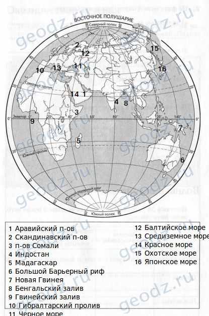 3. Используя физическую карту полушарий, запишите в тетрадь: