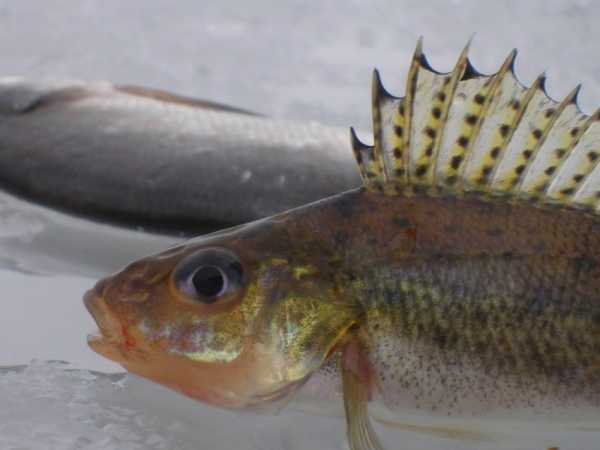 - Окунь балхашский. На первом спинном плавнике у него отсутствует черная точка, а взрослые особи лишены вертикальных полос.