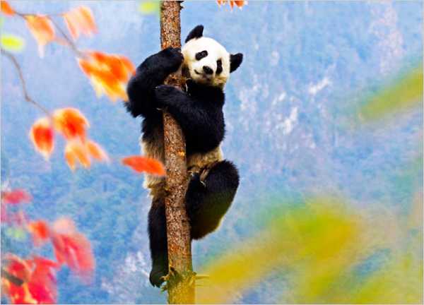 Несмотря на внешнюю неповоротливость, панды отлично лазят по деревьям.