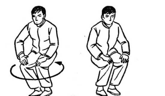 13. Вращение ног в коленном суставе. Присядьте немного и поставьте руки на колени. В таком положении вращайтесь, используя коленные суставы то в одну, то в другую сторону. На четыре счета по пять раз в каждую сторону.