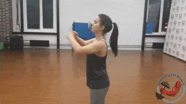- Приседания для разогрева всех мышц. Поставьте стопы чуть шире таза или параллельно, держите спину ровно. Приседая, поднимайте руки перед собой или над головой, колени не выводите вперед за носки. Приседайте по 20-30 раз в умеренном темпе, дышите ровно, без задержек дыхания.