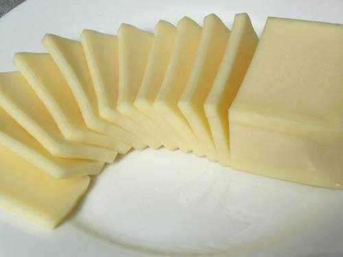 Качество плавленого сыра, консистенция которого позволяет нарезать его ломтиками, можно определить по тому, что, если он хорош, то ломтик его не будет крошиться и липнуть к ножу, пальцам или зубам.
