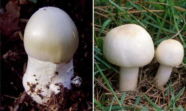 Молодые особи этих двух грибов отличить друг от друга невероятно сложно. Это по силам лишь грибникам с большим опытом тихой охоты. Для сравнения: ниже на фото изображены молодые грибы поганки (слева) и лесного шампиньона (справа).