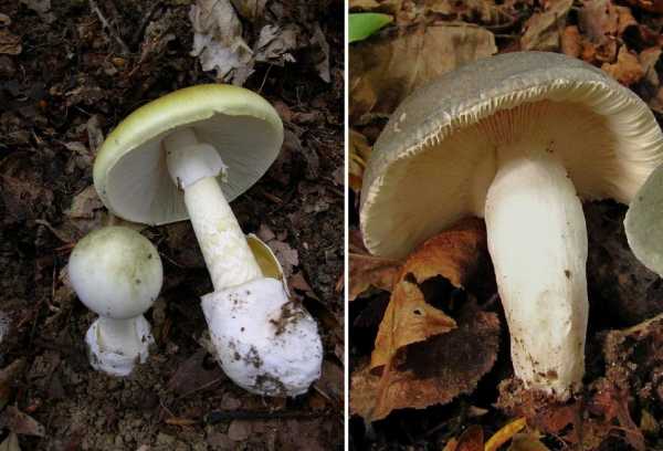 Для сравнения: ниже на фото изображены поганка (слева) и сыроежка зеленая (справа).