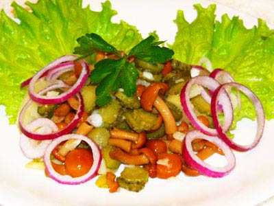 Русский салат с маринованными опятами