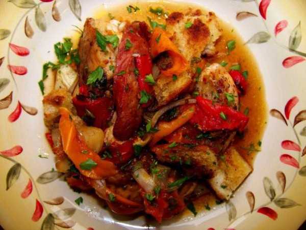 Мясо птицы нарезается на кусочки. К нему добавляются сырые овощи (небольшими кубиками) и специи. Все ингредиенты перемешиваются и завязываются в рукав. Запекать 40 минут (180 градусов). Рецепт полезного блюда «Курица по-королевски» подразумевает использование следующих продуктов: 0,5 кг отварного филе птицы, 150 г болгарского перца (разных цветов), 70 г шампиньонов, 600 мл бульона, 100 мл обезжиренного молока, 5 ст. л. белого вина, 3 ст. л. муки, соль, специи, масло.