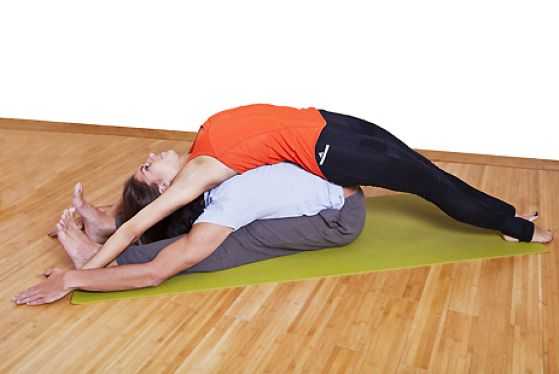 Это лучшая асана для растяжки в домашних условиях. Одно из упражнений, которое не выполнить самому — здесь нужна именно йога для двоих.