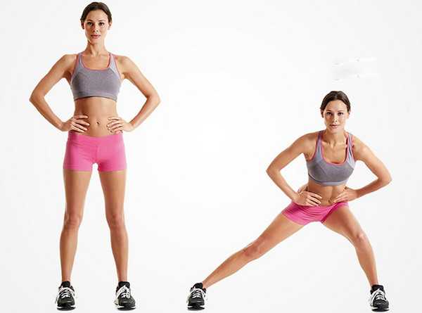 5. «Плие» – этот вид пришел к нам родом из балета. Для этого поставьте ноги как можно шире, носочки разведите в стороны и медленно приседайте, но только не спешите. Эта техника очень хорошо помогает избавиться от жировой прослойки внутренней поверхности бедер. Вы можете также усложнить себе задачу и делать это упражнение с отягощением, например, возьмите в руки гантель и вместе с ней приседайте.