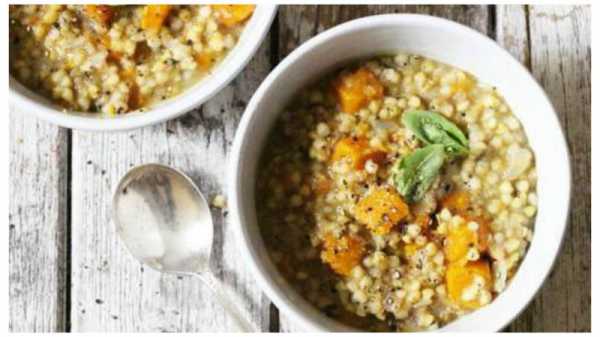 Из всех овощей к гречневой кашке на молоке лучше всего подходит солнечная аппетитная тыква. Этот сочный фрукт добавляется яркости вкусу блюда, а также делает более веселым и привлекательным его внешний вид. Среди зернышек гречки встречаются яркие оранжевые кубики. Ингредиенты: 330 г тыквы, репчатая белая луковица, веточка розмарина, 1 ст. гречневой крупы, 3 большие ложки качественного оливкового масла, пол-литра жирного молока, зубок чеснока, соль, смесь цветных молотых перчиков.