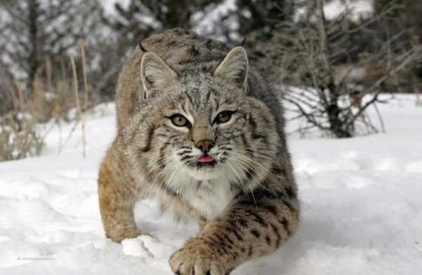В отличие от других хищников, рысь этого вида не боится снежных заметов. Напротив – она может спокойно передвигаться даже по самым большим сугробам и не проваливаться.