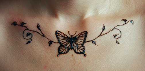 Биотатуировка из хны является абсолютно гигиеничным, безопасным и безболезненным процессом. А поскольку хна обладает дезинфицирующими свойствами, ухаживает за кожей и способна вылечить заболевания кожи, является даже полезным. Цвет татуировки из хны может варьироваться от желто-оранжевого до бардового и даже черного, это зависит от различных добавок. Орнамент из хны держится на теле в среднем 3 недели.