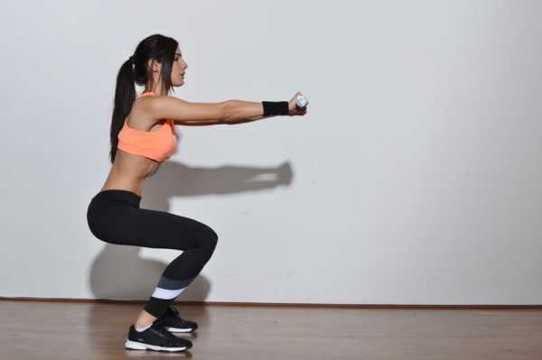 - Разведение ног в полуприседе