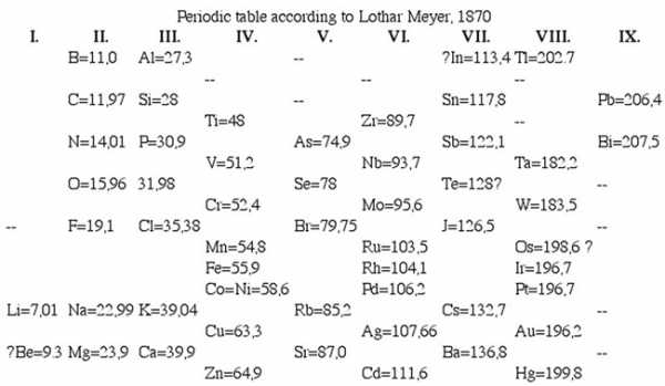 Ранняя версия таблицы Мейера (1862):