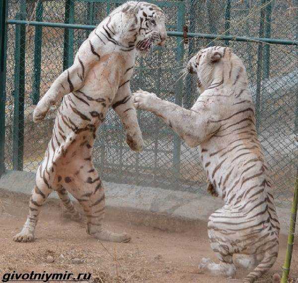 На фото бой двух белых тигров самцов