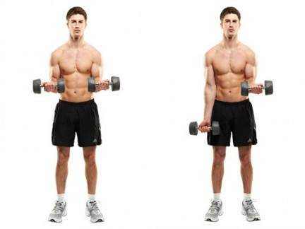 4. Вы можете практиковать как поочередное сгибание рук с гантелями, так и одновременное. Но для большей эффективности рекомендуется выполнять именно поочередное сгибание рук