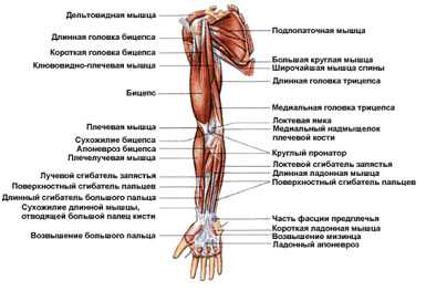 Происходит это потому, что сухожилия двуглавой мышцы прикреплены под углом, и если есть необходимость развернуть предплечье в наружную сторону, то это в какой-то мере осуществляется и за счет сокращения бицепса. Когда он сокращается (укорачивается), то тянет предплечье, вынуждая его разворачиваться в наружную сторону.