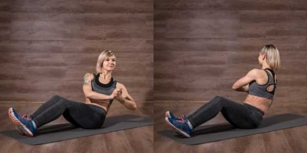 - Если хотите усложнить упражнение, оторвите стопы от пола.