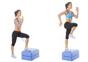 Выполняем пятнадцать зашагиваний правой ногой, затем столько же – левой.