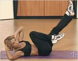 - И.п. – то же, что и в упражнении 5. При поднятии тела необходимо коснуться левым локтем правого колена. На вдохе – опуститься на пол. То же самое в другую сторону: правый локоть – левое колено.