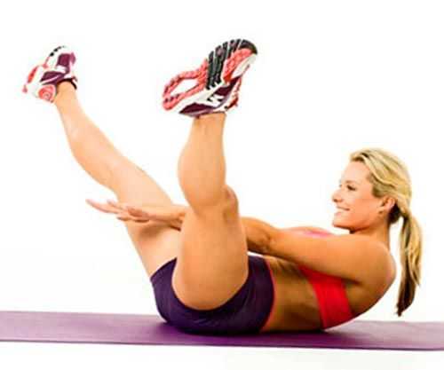 - Лечь на спину, руки за голову. Ноги приподнять и согнуть. На вдохе приподнять тело, подтянуть колени к груди, напрягая мышцы живота. А если потянуться правым локтем к левому колену, а потом наоборот, это будет полезно для боковых мышц живота и поможет быстро сформировать красивую талию.