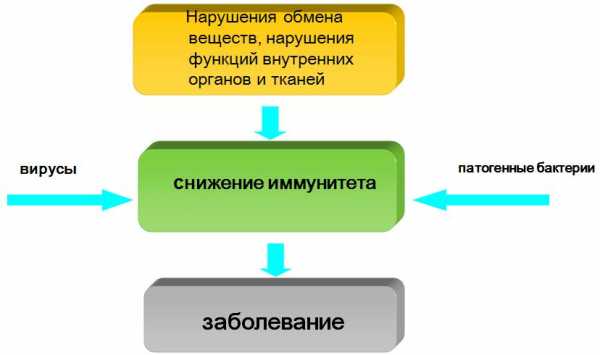 Эти факторы приводят к тому, что перестают четко работать защитные механизмы организма, понижается его сопротивляемость к вирусам, чужеродным клеткам, бактериям и токсическим веществам.