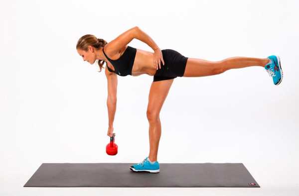 Становая тяга с гирей стоя на одной ноге