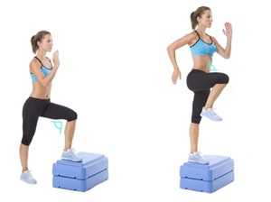 - Сделайте вдох и приставьте правую ногу назад к левой. Совершайте подъём только за счёт усилия передней ноги.