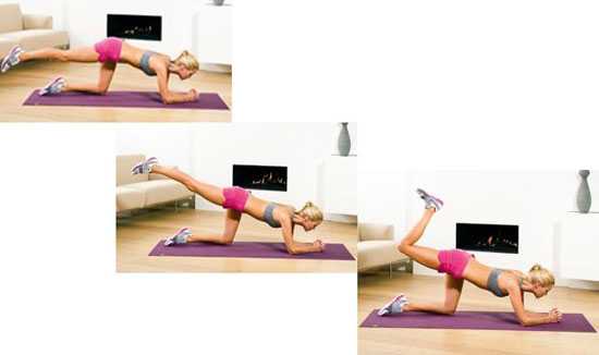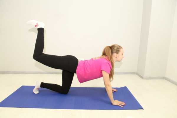 2. Стоя на локтях и коленях — пятку к потолку