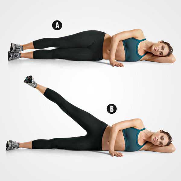 - Повернитесь на другой бок и повторите движение правой ногой.