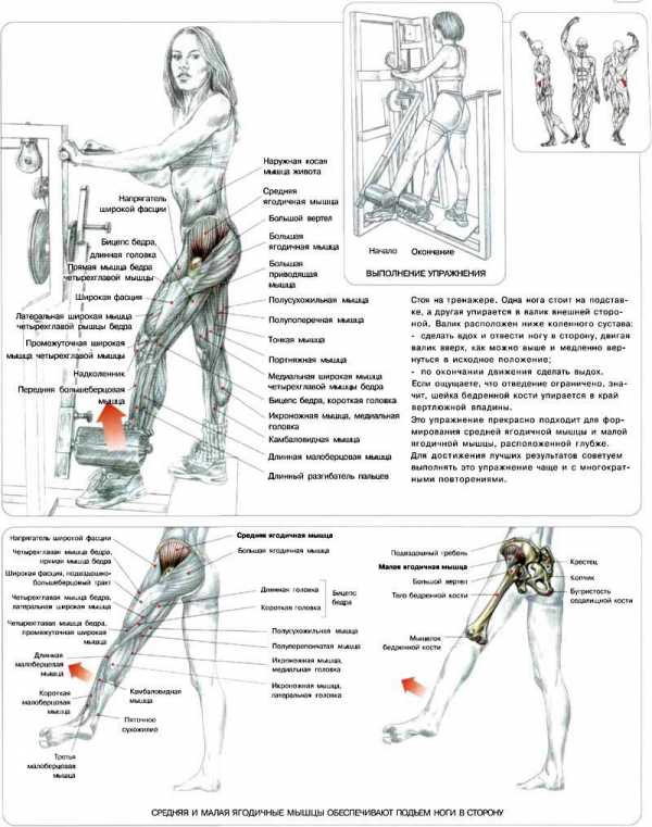 Упражнение прорабатывает ягодицы и внешнюю сторону бедер.