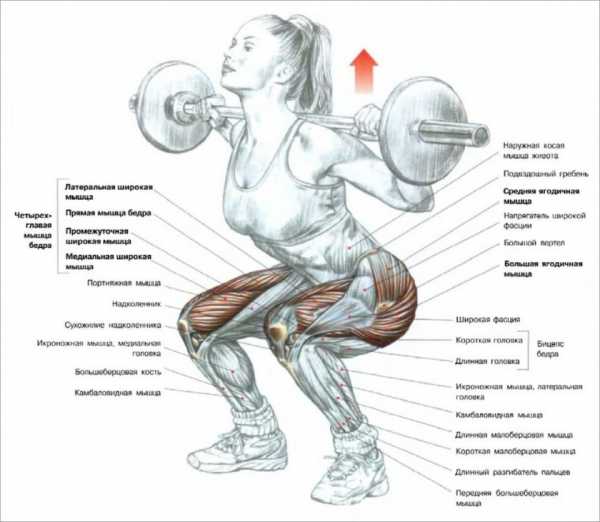 Данное силовое движение прорабатывает мышечные группы ягодиц и бёдер и является одним из самых лучших упражнений дома для попы и ног. Приседать можно с гантелью, либо с грифом или бодибаром на плечах.- Станьте ровно. Спина прямая, подбородок слегка приподнят.