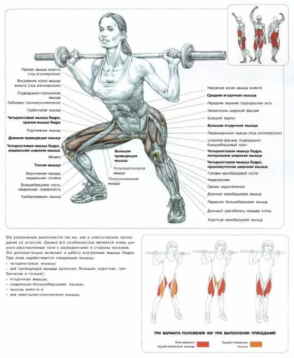 1. Приседания, стопы развернуты диагонально