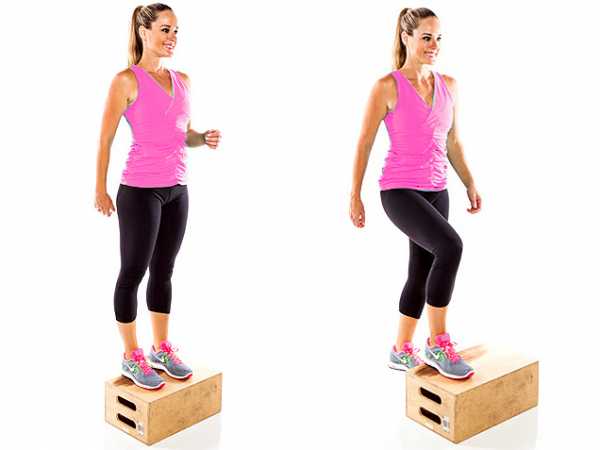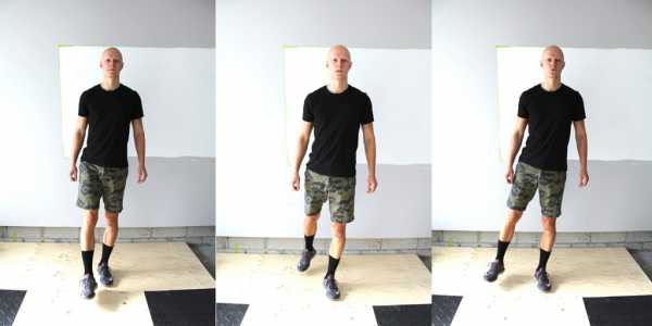 - Поднимаемся с упором на ступню ноги, выставленной вперёд.