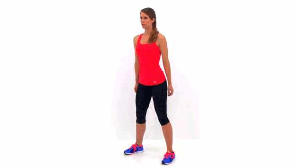 - Становимся ровно. Носочки можно немного развернуть внутрь – это поможет уменьшить нагрузку на поясницу.