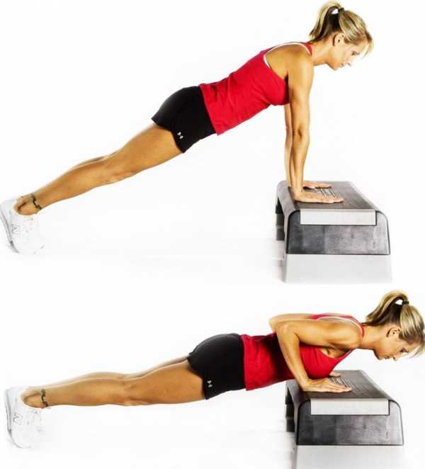 - Наклонитесь, ладони поставьте на платформу, сохраняйте туловище прямым.