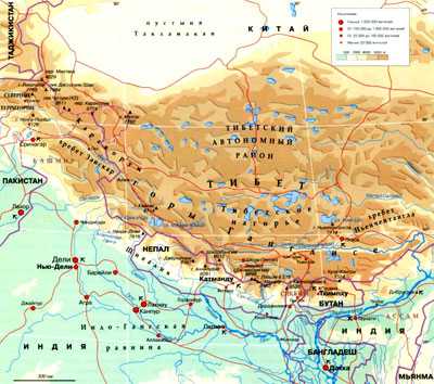 Гряда гималайских гор на карте