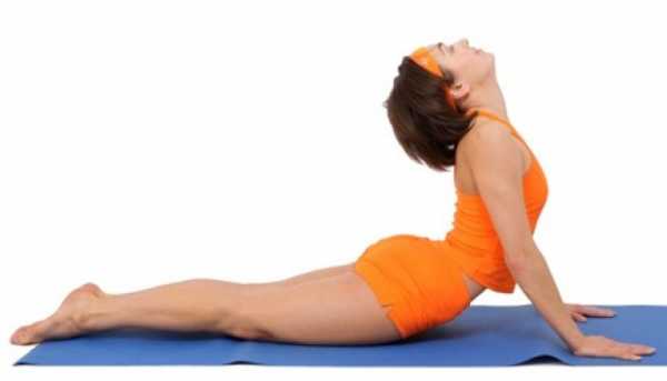 - Кобра. Лежим прямо на животе, сгибаем руки как для жима лежа, выпрямляем локти, не отрывая ног от земли. Плечи назад, на выдохе отрываемся от земли, держимся только на стопах. Сохраняем такое положение до минуты, ложимся на выдохе, повторяем.