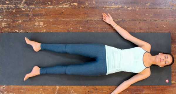 Основная поза для расслабления всех мышц организма, которую рекомендуется делать в завершение комплекса — Шавасана, она же «поза мертвеца». Выполняется лежа на спине, расслабляем мышцы от ног до головы. Ноги прямые, сомкнутые, но расслабленные. Руки лежат вдоль тела ладонями вверх. Выполняем на протяжении десяти-пятнадцати минут.